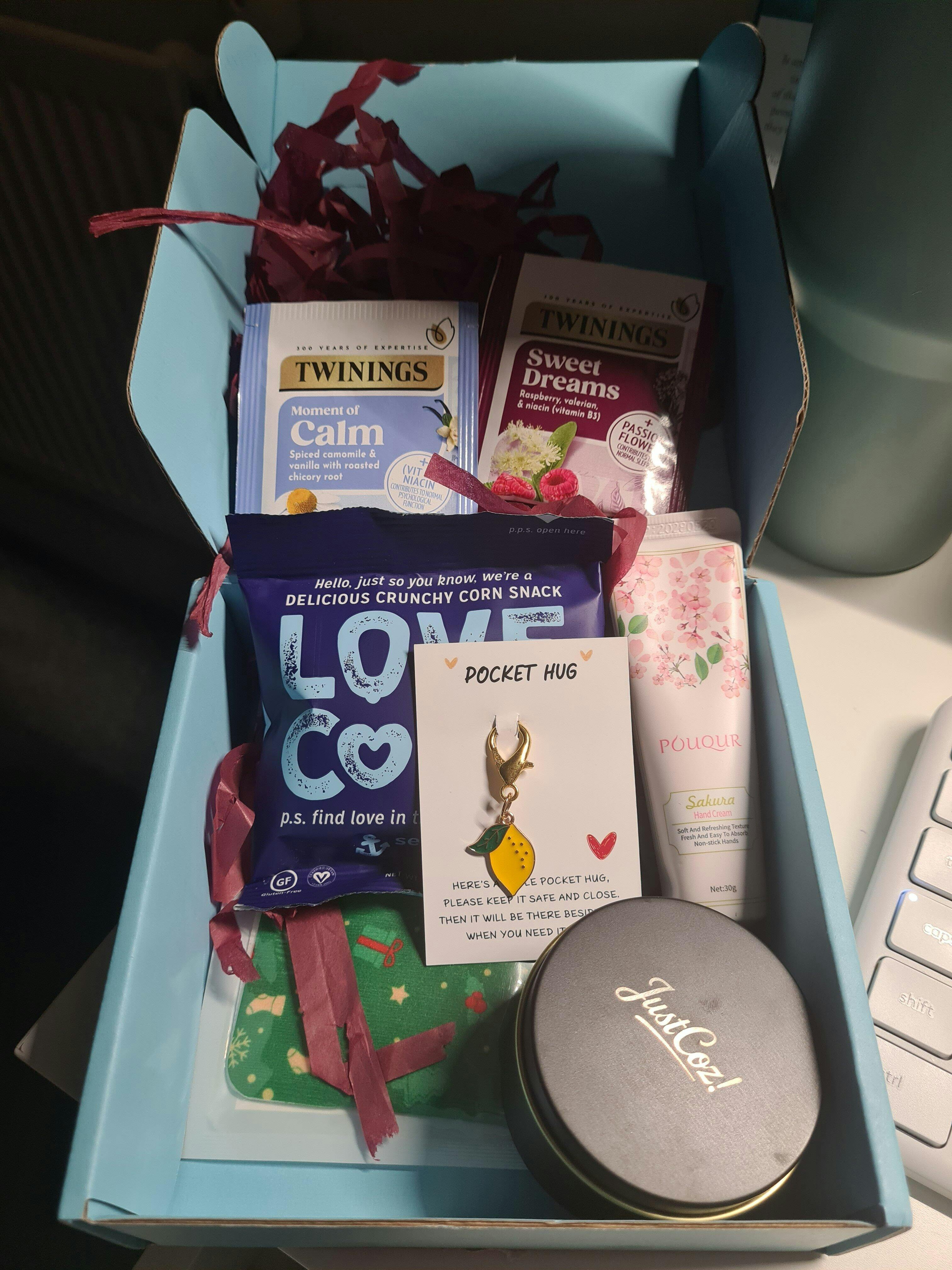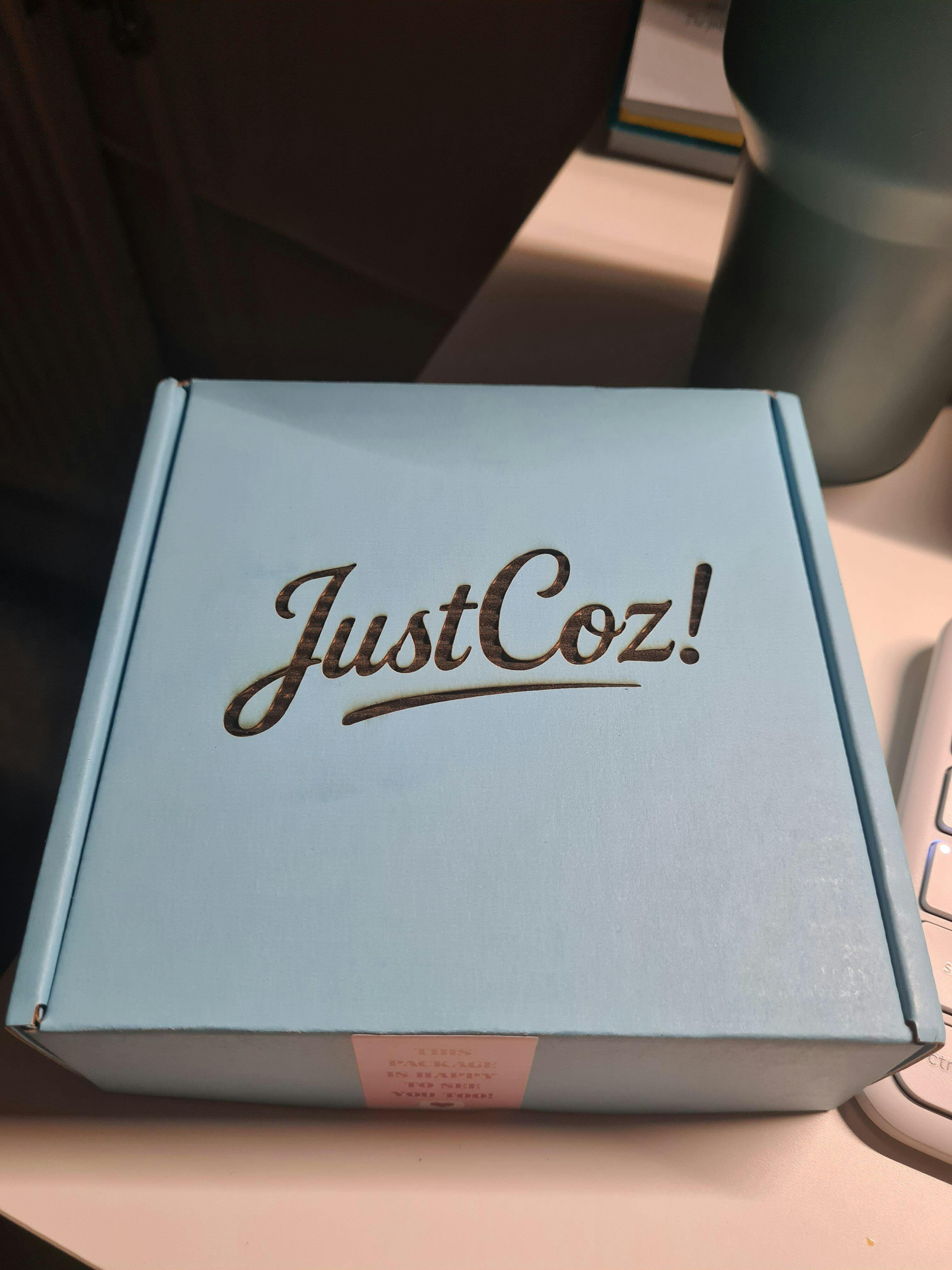 Happiness starts with a box. My girlfriend was so over the moon to receive this and it's cheered her up. Why, why not and that's what these justcoz boxes are all about :)
